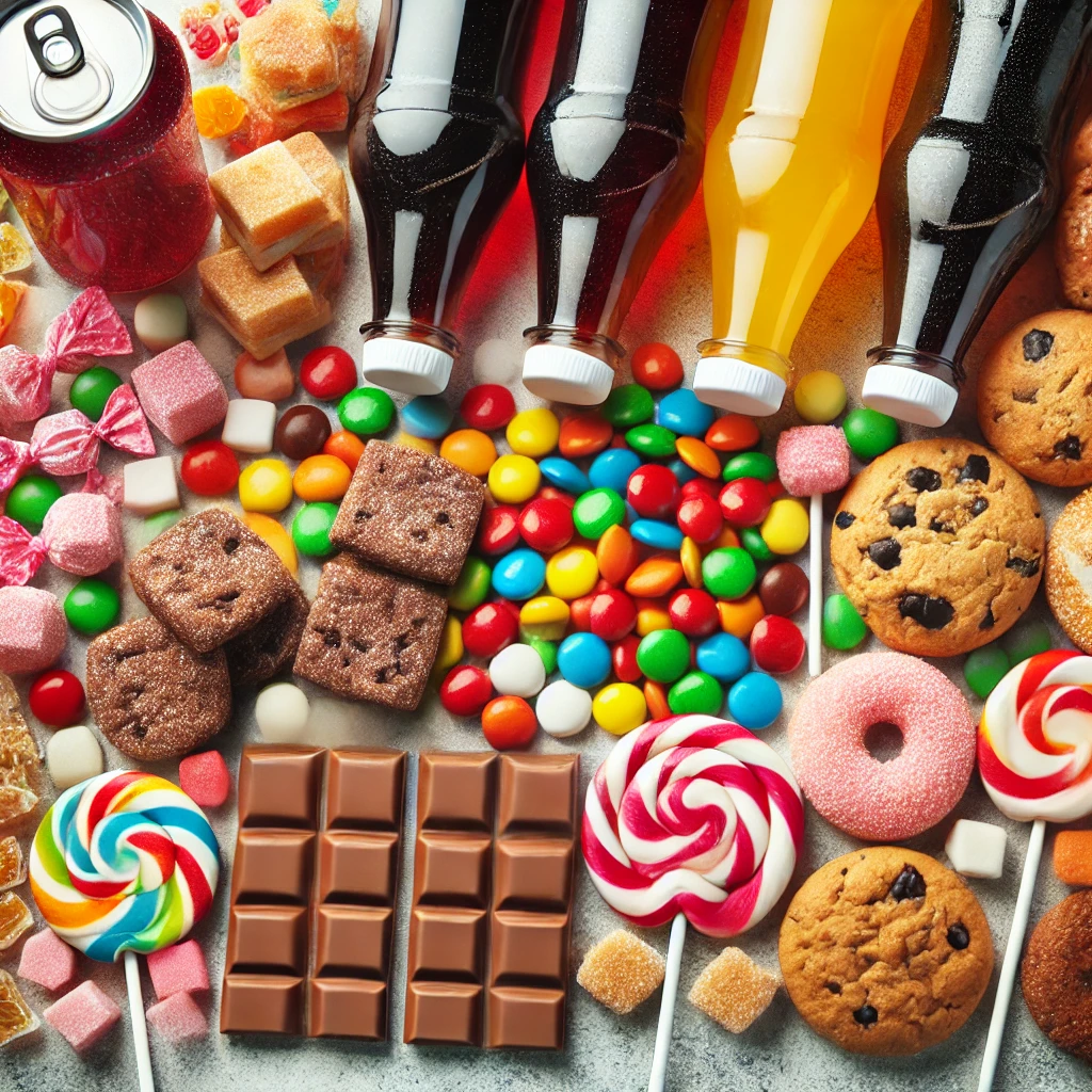 첨가 과당(탄산음료, 과자, 가공음식): 빠른 흡수 → 혈당과 인슐린 급증