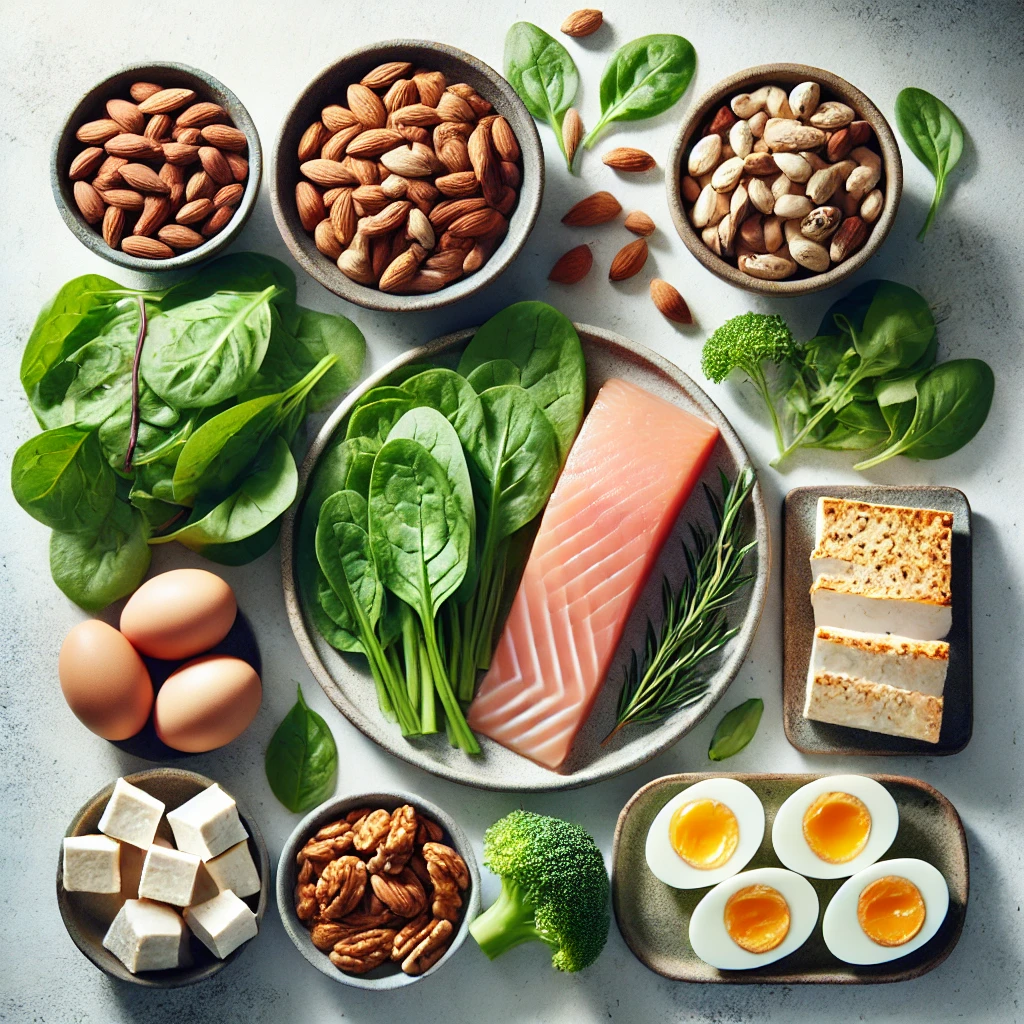 *닭가슴살, 생선(연어, 고등어), 두부, 달걀, 렌틸콩