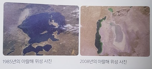 아랄해는 중앙아시아에 있는 소금 호수 이름이에요. 말이 호수지 경상도와 전라도, 충청도를 합한 것보다 넓고 길이는 약 70미터나 될 정도로 커요. 아름다운 데다가 잉어와 철갑상어 등 많은 생물이 살아 세계적인 관광지였어요.