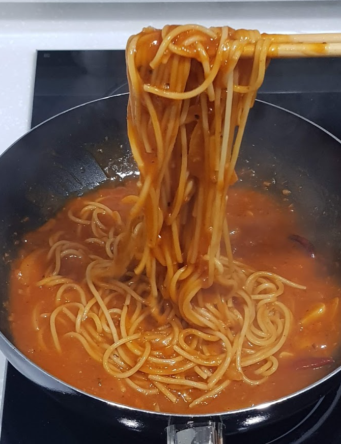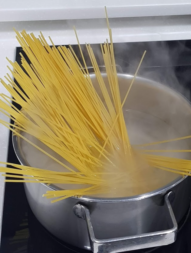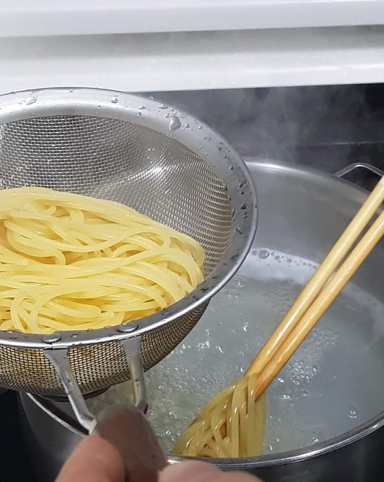 ㆍ냄비에 물 1400ml(종이컵 9컵 반)를 넣고 끓으면 파스타 면을 넣고 7분간 삶기