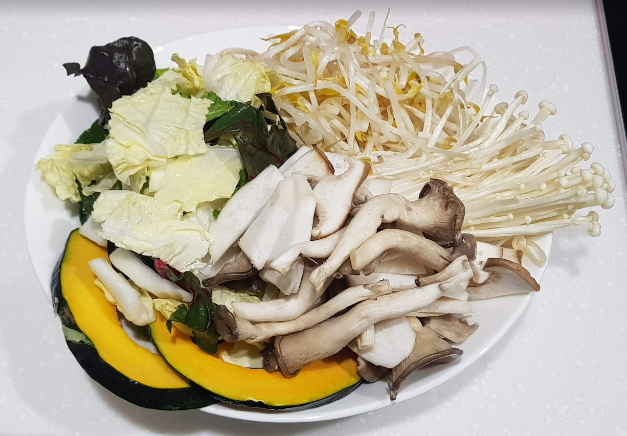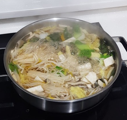 ㆍ샤브 육수에 모든 야채와 버섯을 넣고 끓이기