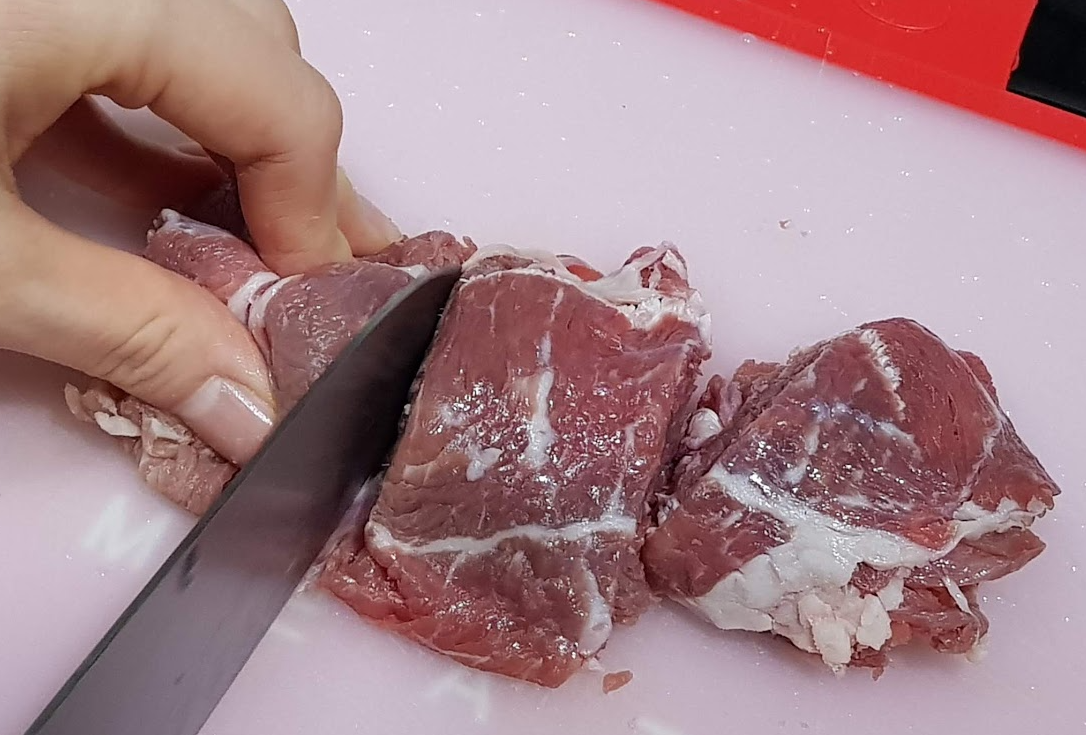 - 소고기는 3등분으로, 포두부는 1cm 너비로 길게 자르기