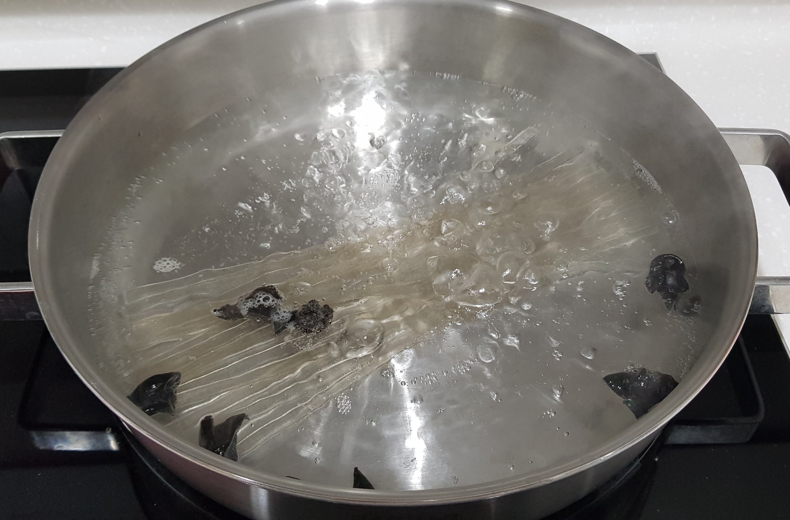 - 끓는 물에 당면과 흑목이버섯을 넣고 8분간 삶은 뒤, 체에 밭쳐 건져두기