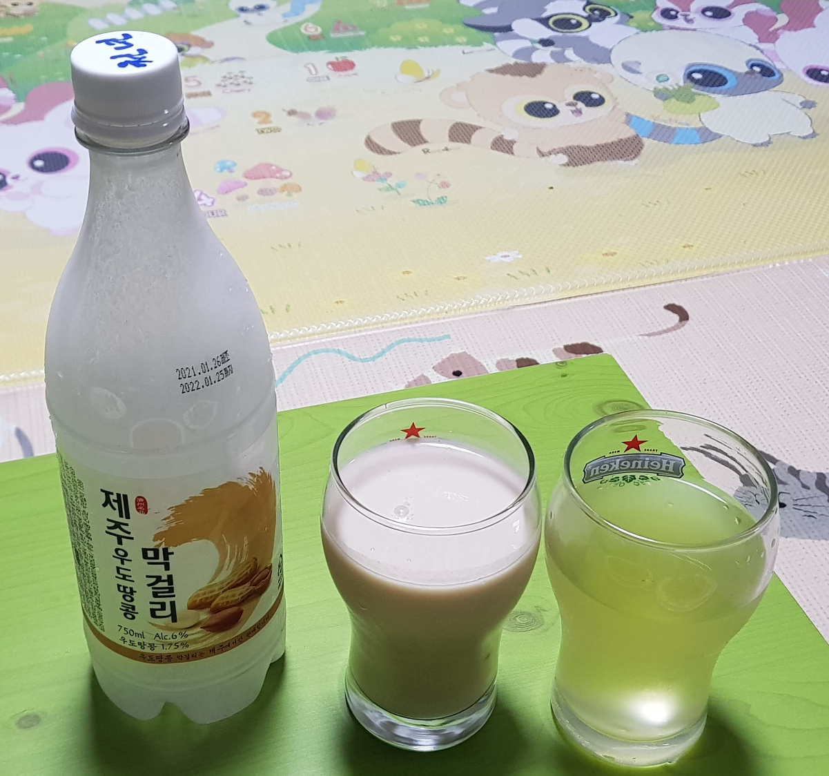 평소에 막걸리를 가끔씩 먹었는데 제일 많이 먹었던 것은 지평생막걸리이다. 달고 참 맛있다. 그리고 다른 종류의 막걸리는 어떤 맛일지 궁금하여 새로운 것을 사보곤 한다. 이번에는 설을 맞이하여 남편과 함께 먹기 위해 우도땅콩 막걸리를 구입했다.