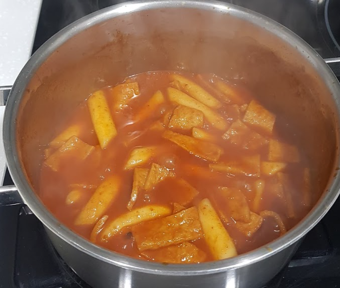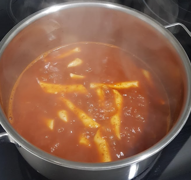 6. 적당히 끓으면 떡볶이 떡을 넣고 잠시 끓여주다가