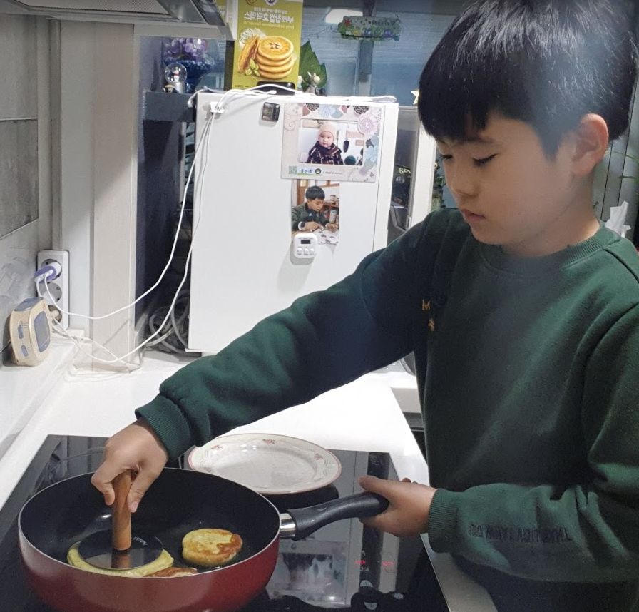 전에 함께 몇 번 만들었는데 오늘 처음으로 준이놀이터가 호떡을 전부 만들었다. 반죽을 하고 모양 만들기는 준이놀이터가 모두 하였고, 구울 때는 준이놀이터가 조금 누르고 남편이 모두 구웠다.