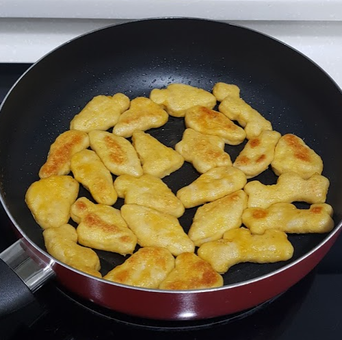 2. 식용유를 두른 팬에 치킨너겟을 굽는다.