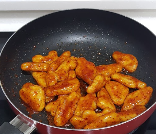 3. 잘 구워진 치킨너겟에 소스를 버무린다.